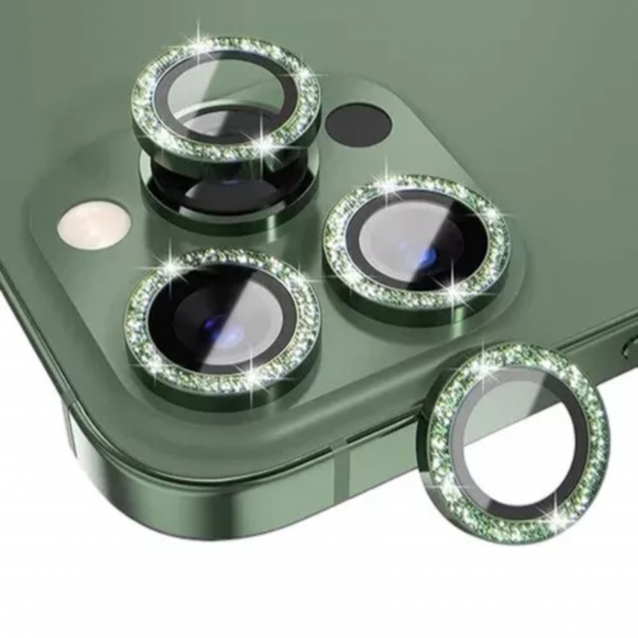 IPHONE 12 VIDRIO CAMARA STRASS VERDE