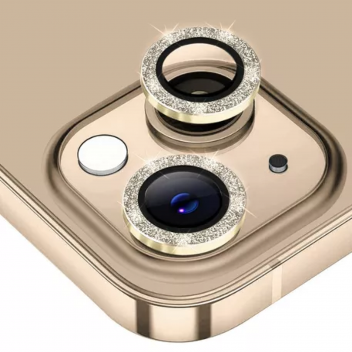 IPHONE 12 VIDRIO CAMARA STRASS DORADO
