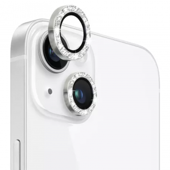 IPHONE 14 PLUS VIDRIO CAMARA STRASS PLATEADO