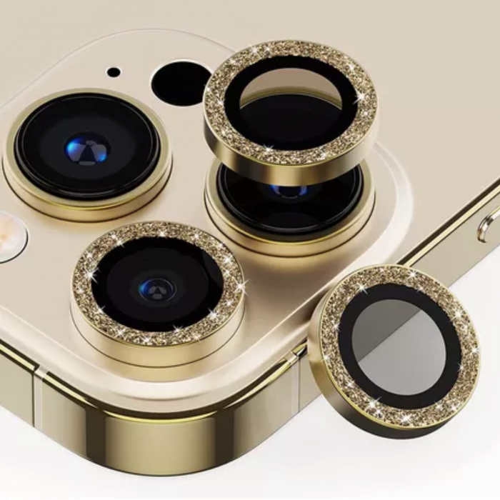 IPHONE 14 PRO VIDRIO CAMARA STRASS DORADO