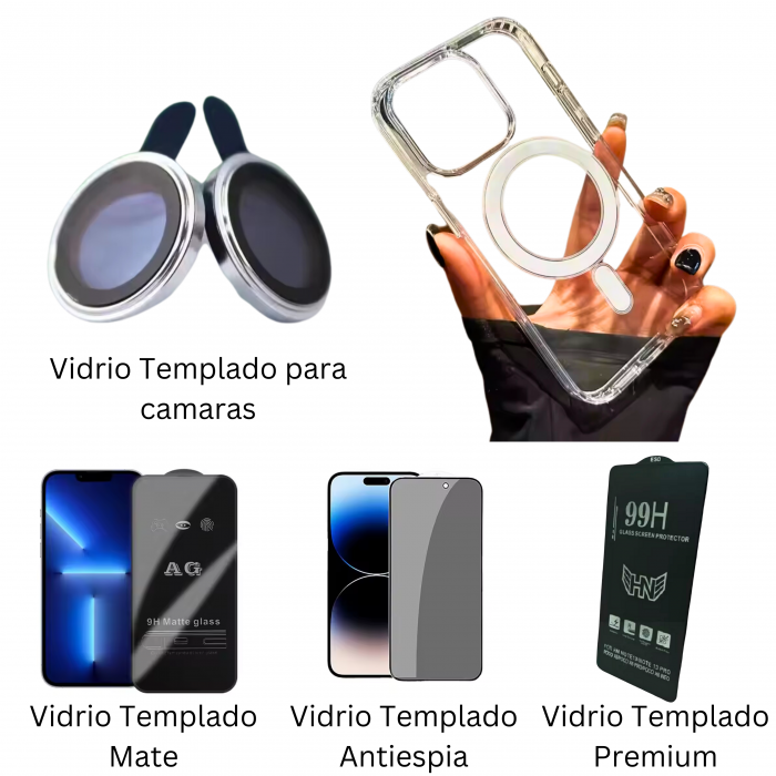 KIT FUNDA MAGSAFE + 3 VIDRIOS + VIDRIO CAMARA PARA IPHONE 15